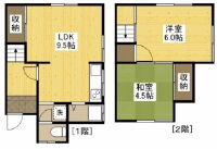 間取詳細:(1F)LDK9.5、(2F)洋6、和4.5